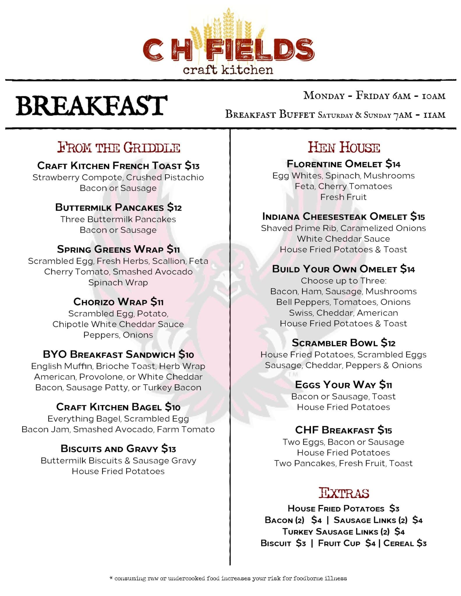 Saturday & Sunday, 7am-11am (breakfast buffet only)
